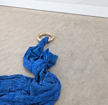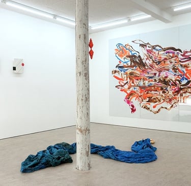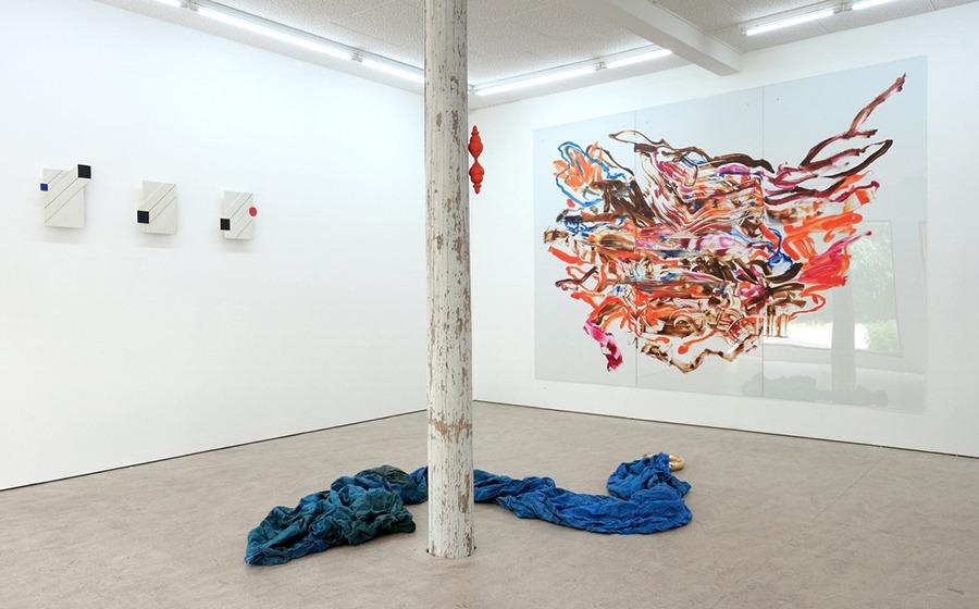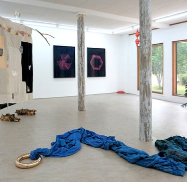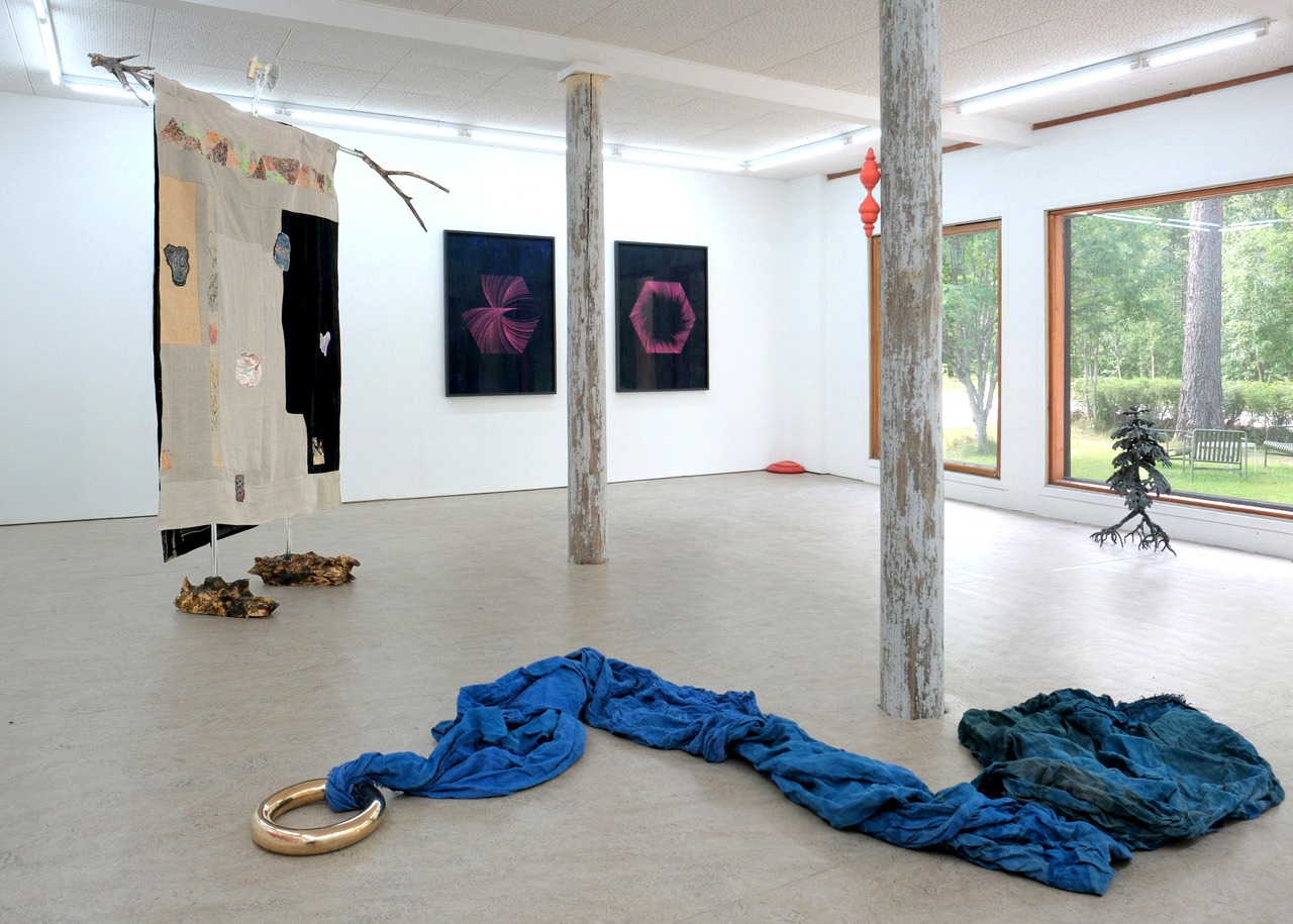 Rået målning och Källan skulptur golv Samlingsutställning 2025 Elastic Gallery Jädraås Eric Lennarth, Sanna Lindholm