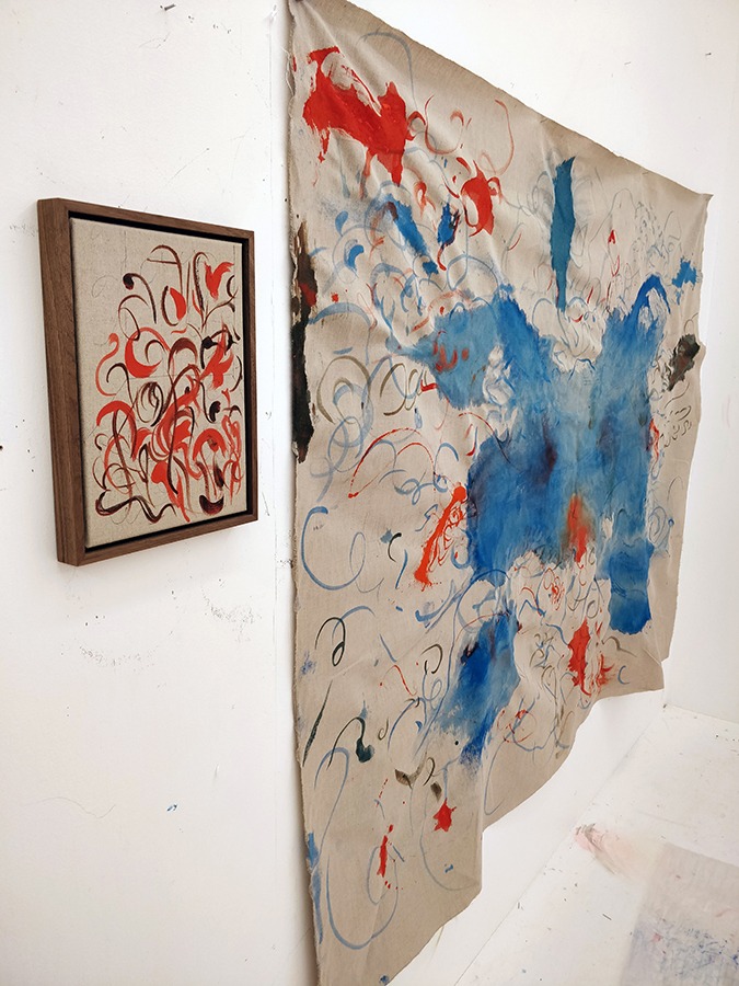 Kurbits notes and tapestry 2023 acrylic on linen 140 x 220cm