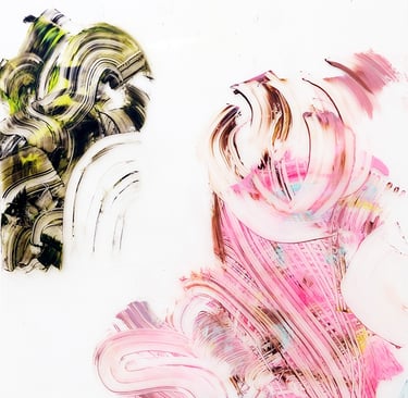 Double dancing small series Hot summer - Hide and seek 2019 oil on plexi 29 x 21cm